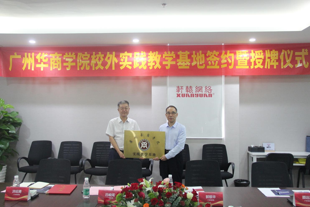紧接着,吕副校长代表星空XK数据科学学院与轩辕网络签署校外实践教学基地合作协议书,郭校长代表学校为轩辕网络授牌“广州商学院实践教学基地”。