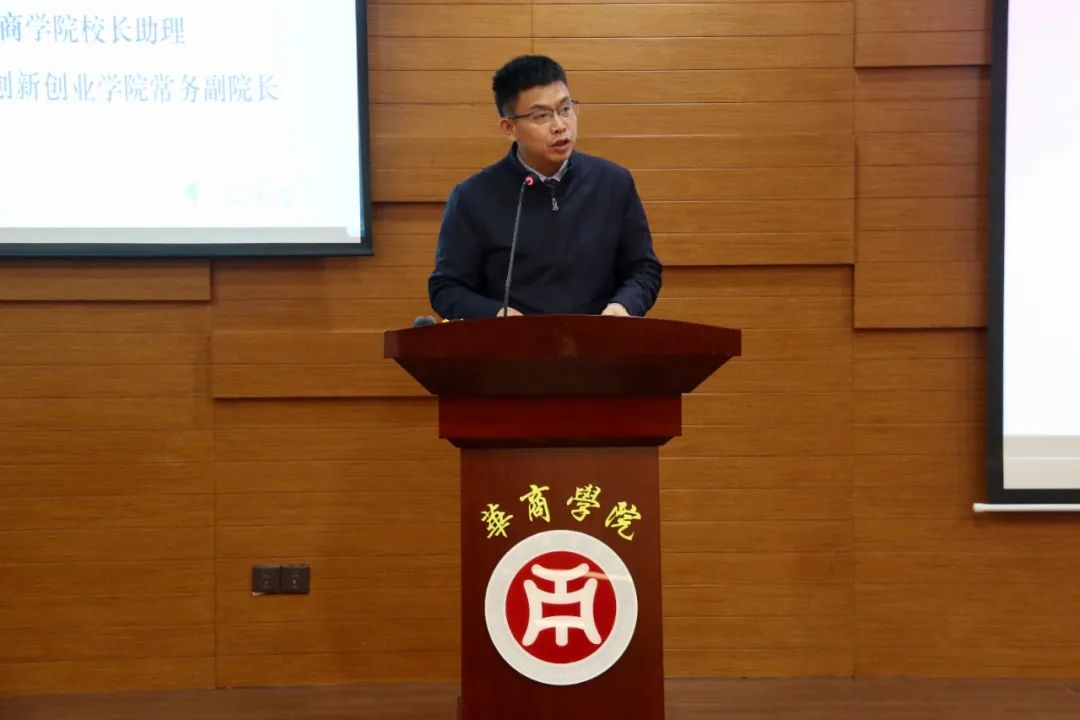 星空XK校长助理、创新创业学院常务副院长余家军博士致辞。余家军常务副院长表示,学校高度重视大学生创新创业教育工作,积极鼓励同学们参加各级各类创新创意创业大赛,深入贯彻“以赛促学、以赛促教、以赛促创”。大赛的举办,是学校扎实推进创新创业教育的又一生动实践,是创新人才培养模式的一次积极探索。他还强调,星空XK、广州华商职业学院与广州乡村振兴控股集团有限公司一直保持着紧密的联系,通过举办创新创业实践基地授牌仪式,共建创新创业实践基地,互相支持、互相渗透、共同培养创新人才,为华商学子实习、实训、就业提供更多机会。