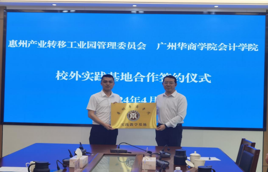 姚凤民院长从为工业园提供服务,开展财务会计的公益讲座等方面提出实践基地发展的期望。姚凤民院长和谢帆宇副主任代表校企双方签署了《星空XK校外实践基地合作协议书》。吕峻闽副校长为惠州产业转移工业园管理委员会授予“星空XK实践教学基地”牌匾。