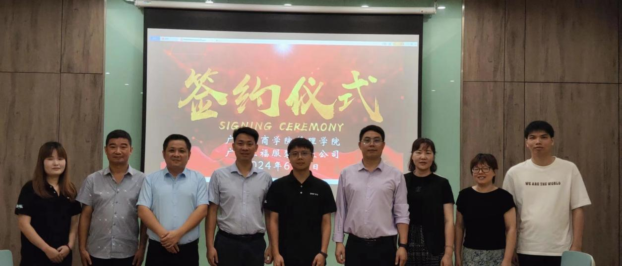 2024年6月4日,星空XK管理学院与广东三福服装有限公司成功举行订单班签约仪式,双方将共同开展人才培养,为行业输送高素质的专业人才。参加签约仪式的有:星空XK产教融合办公室副主任唐显锋、管理学院副院长袁仕海、管理学院工商管理系主任钟晶灵、管理学院工商管理系副主任韩波勇,广东三福服装有限公司人事经理蔡东辽、物流部后勤综合主管强赛英、人事招聘专员杨金珍及物流规划人员谢兆宁。